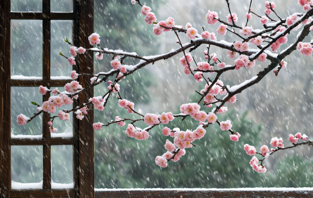 看琼花漫舞,朔风劲、北原驰。正万里冰封,千山素裹,玉砌银枝。梅枝。蕾苞欲吐,对寒天浅笑展娇姿。幽径兰芽悄露,破冰萌动春思。