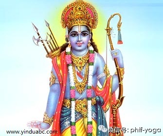 印度两大经典史诗(罗摩衍那)里的主人公,为了寻找爱妻悉多而打败了有十个头的魔王。是印度三大主神毗湿奴的化身之一。
