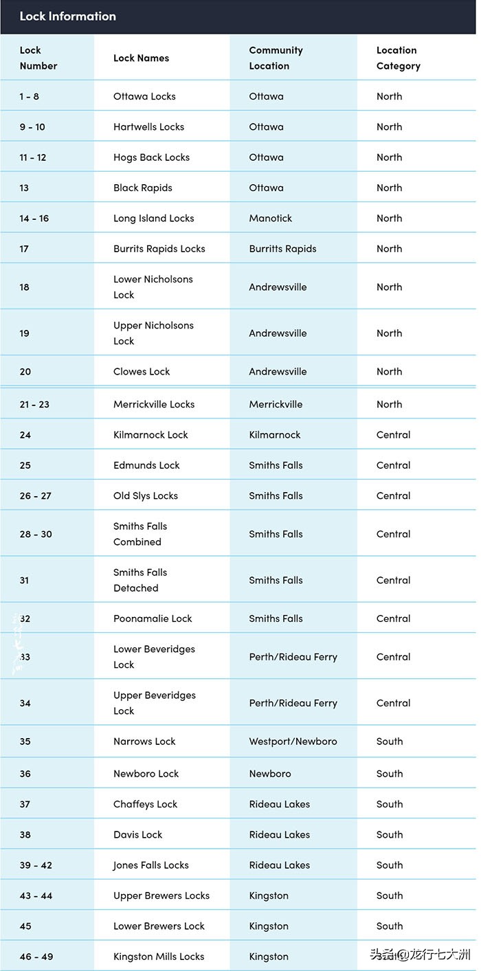 2016年秋在加拿大自驾旅行中,我从渥太华到金斯顿往返驾车400多公里,参观了渥太华的1-8号船闸、11-12号“猪背船闸”(HOGS BACK LOCKS)、33-34号上/下贝弗里奇船闸( Upper and Lower Beveridges LOCKS)和46-49号金斯敦米尔斯Kingston Mills Lock)。