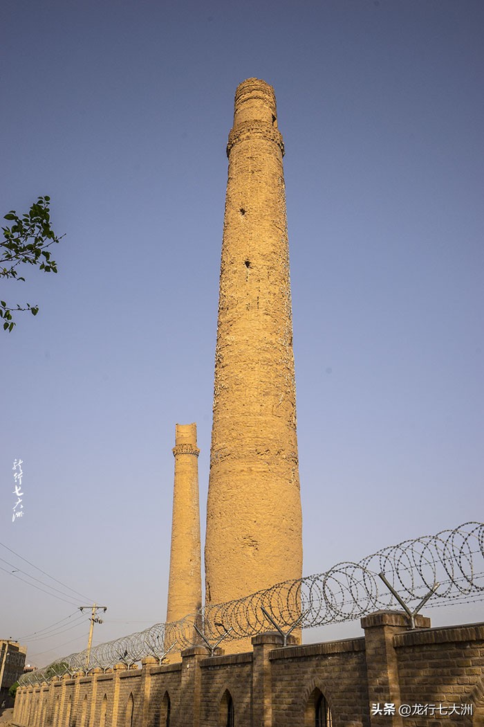五座宣礼塔都基本上在马路边上,从远处看,这些15世纪的塔楼就像是被遗忘的工厂里弯曲的烟囱。每座塔的高度都约50多米,其顶部尖端处都有损毁,斑驳的外表使其显得苍老,个个都弯着腰,摇摇欲坠,马路上车水马龙,让路人担心那轰鸣而过的卡车会让他们顷刻倾塌。