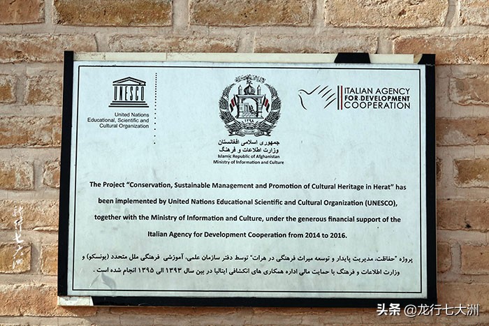 在格哈德·沙德陵的院墙上,联合国科教文组织关于文物保护的标志牌