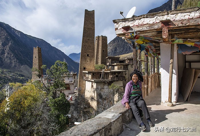 进入寨子参观古碉楼是免费的,但这里的古碉楼都不能登顶,只能在外面观赏。在欣赏了五角的八角的碉楼后,我走进了一家藏族老乡的家里,一对老年夫妇居住在这里,在他们家的“悬崖看台”上,可以欣赏了藏寨的美景,也能远眺隔岸藏寨山上的碉楼,非常壮观。