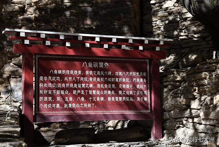 村寨中央的东女古屋,屋前有一个关藏寨古碉楼的说明,我将其全文复制如下,从其中可以看到碉楼数量之一斑: