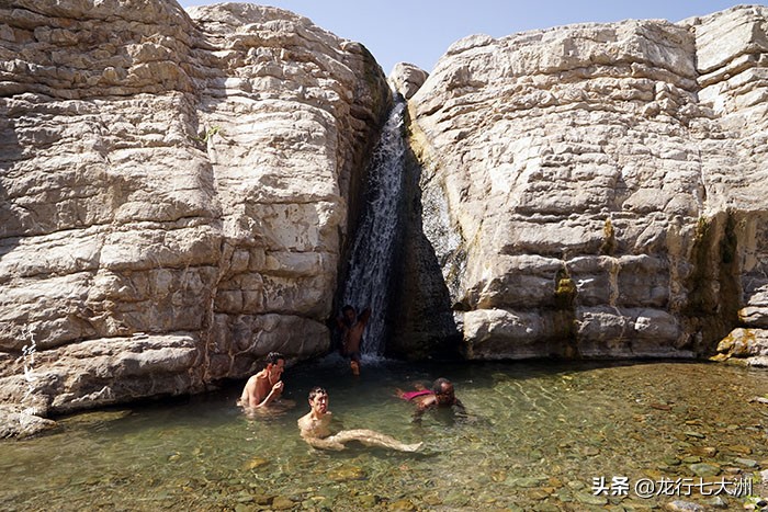 盐湖回来,路边一处小瀑布,几个欧洲人忍不住跳下去洗澡;