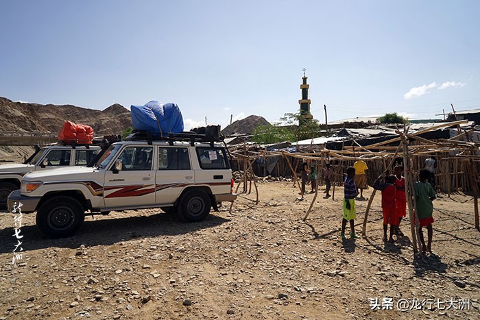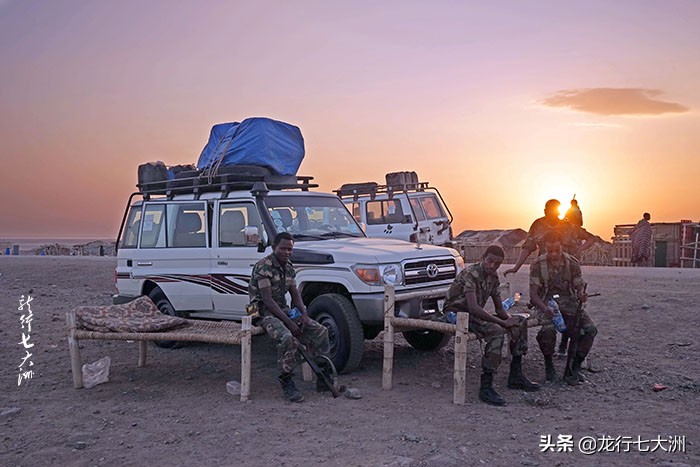 Hamedela是个破烂的路边村庄,我们今晚要在这里露营。在这里稍做停留,我们两个车带着一车的护卫士兵出发去盐湖,去看落日和运盐的骆驼队,从这里开始,之后的行程都有武警伴随护送。
