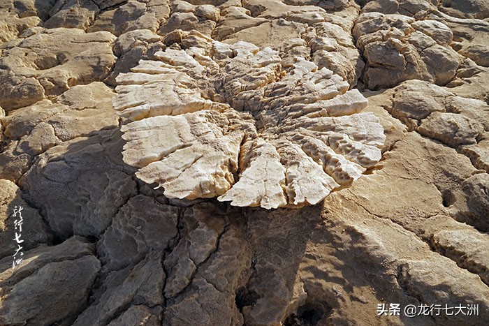 盐湖下来的山坡可以看到龟裂和隆起的地面,说明这里地质变动频繁,随行的战士说,盐湖的水是从地下冒出来的,水时少时多,多的时候会漫下山坡。