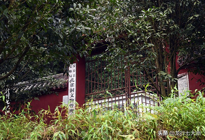 最容易到达的安岳石窟就是孔雀洞了,其位于安岳到大足的公路边上,车可以开到大门口。但不幸的是我抵达时,看门人外出且当天不归,只有他的孩子在家但没有钥匙,故我没能入内参观,有点遗憾。好在大铁门是有空隙的,主洞窟——孔雀洞正对着大门,我才得以拍下来几张图片。