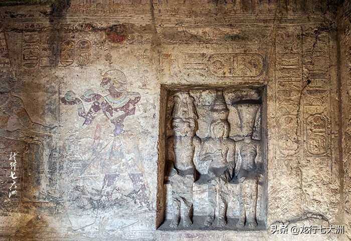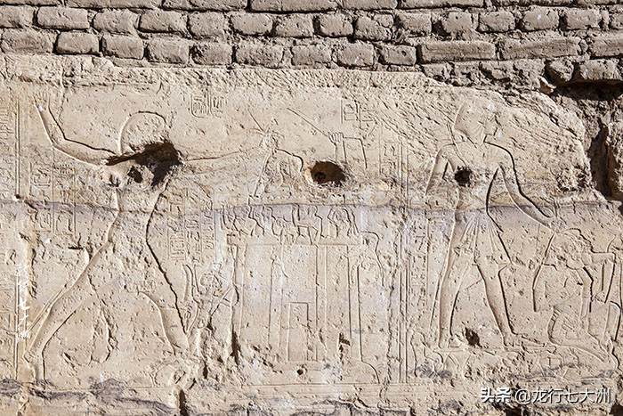 最精美的要数那些拉美西斯坐在王位上接受战败的努比亚人进贡的情景,贡品包括豹皮、金戒指、象牙、羽毛和长相奇特的动物。尽管神庙里的浮雕已经有不太程度的残缺,但仍保存了多数的历史遗迹,并保留了大量原始色彩。