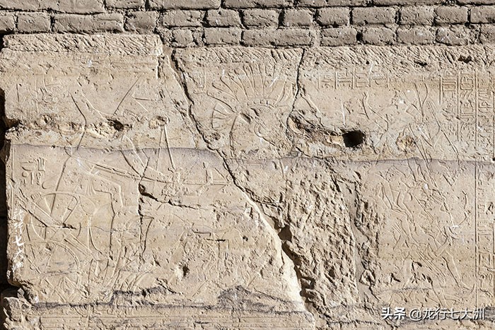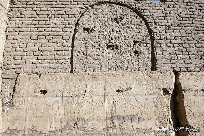 神庙前院的墙壁上有几幅描绘法老打败努比亚人(南面的墙上)和抵抗利比亚人与叙利亚人的战争(北面的墙上)的精美浮雕。