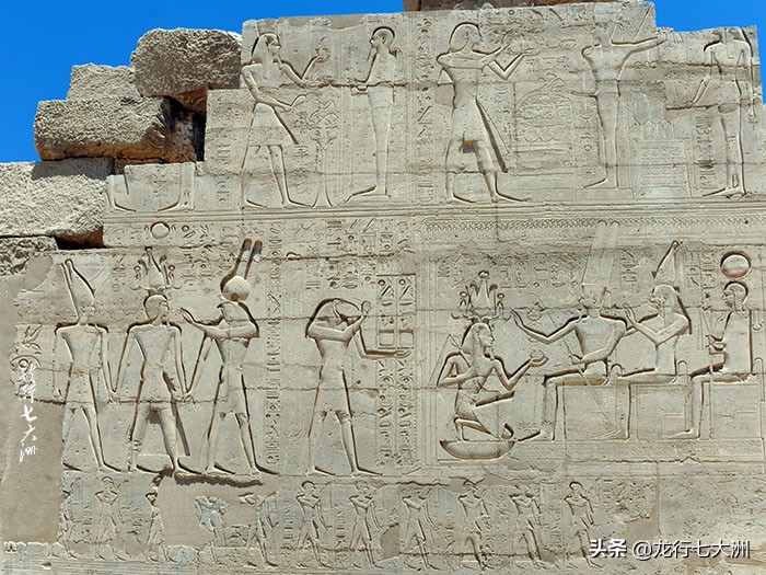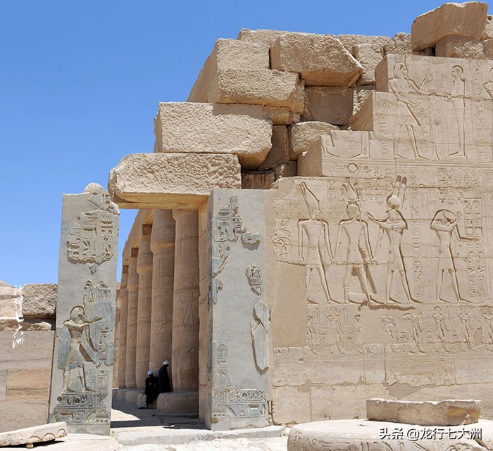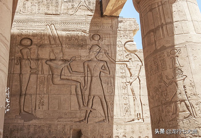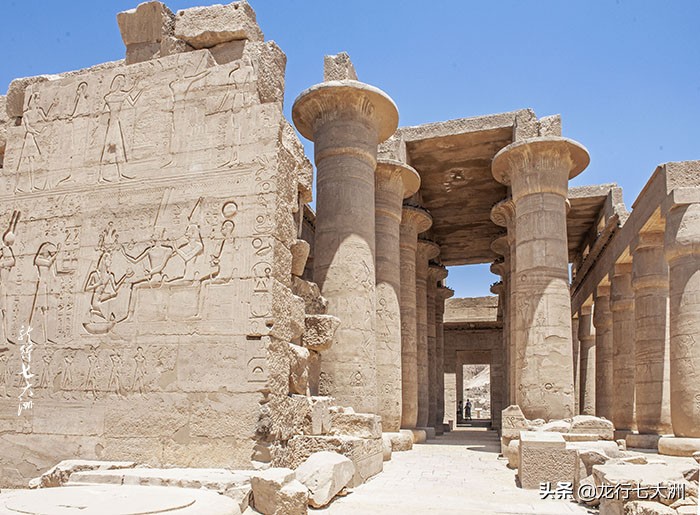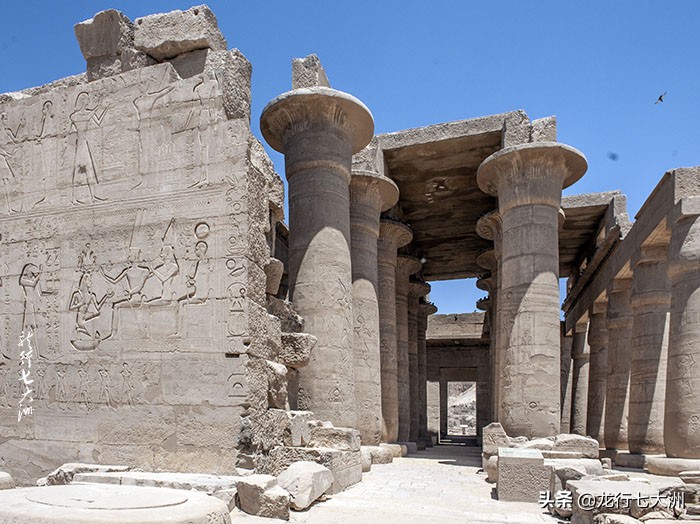 在神庙残留的墙壁、石柱上,能看到很多关于拉美西斯二世和诸神的浮雕;3000多年过去了,多柱大厅的柱头的彩绘,仍鲜艳如初。