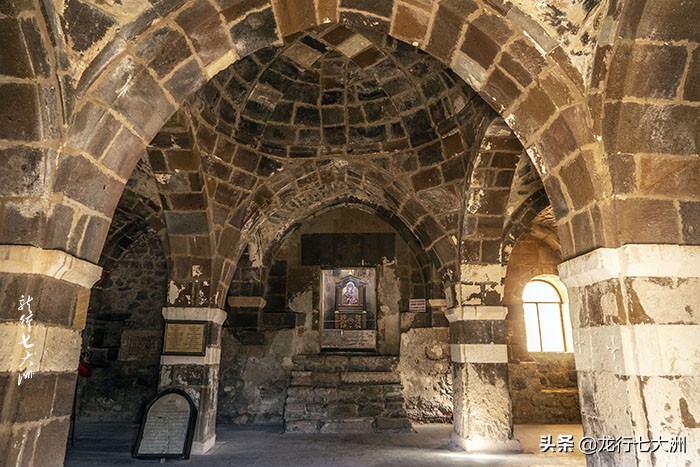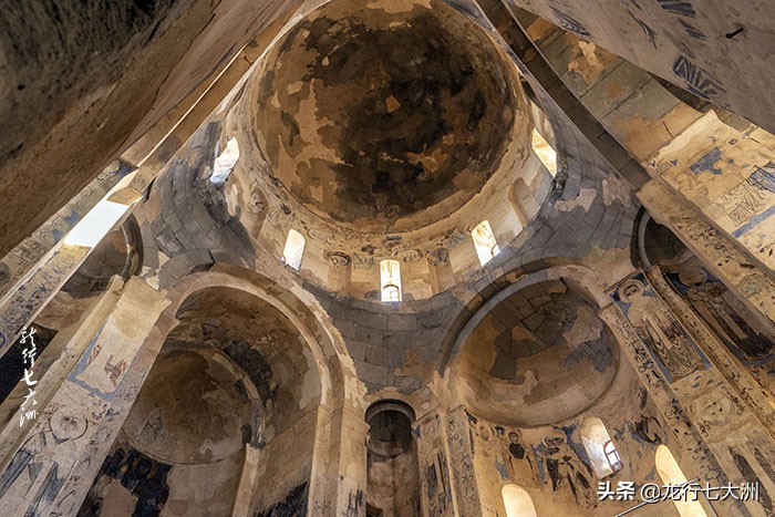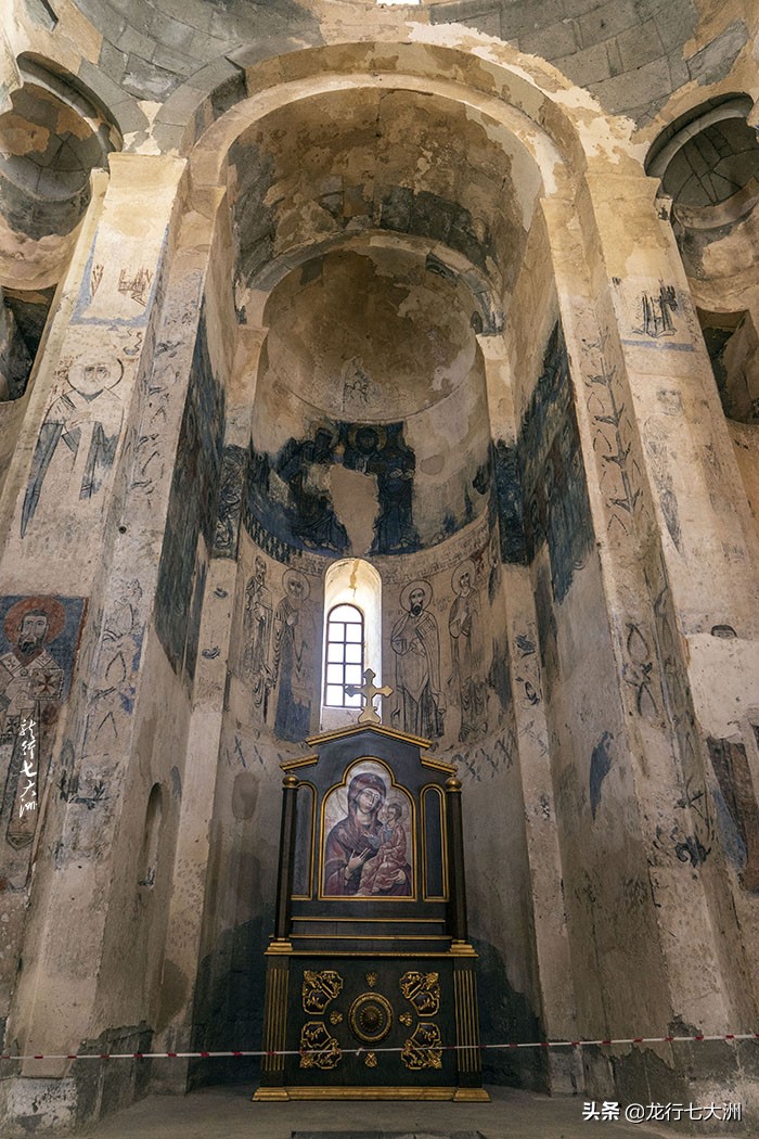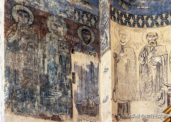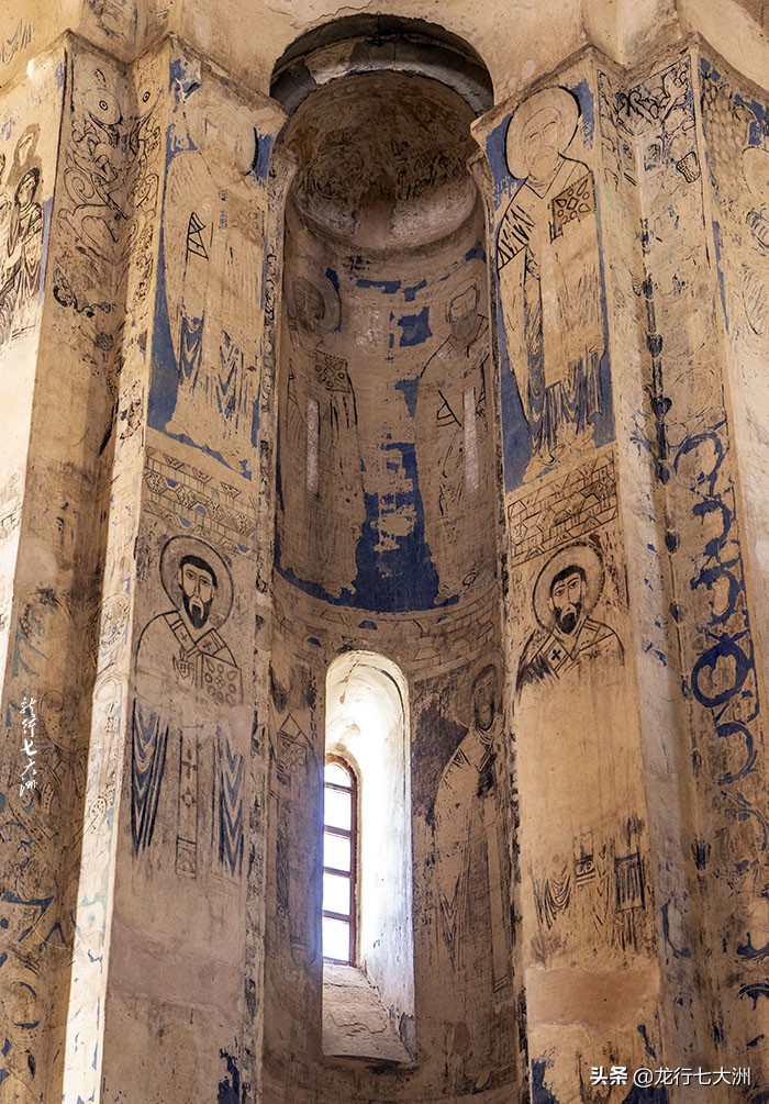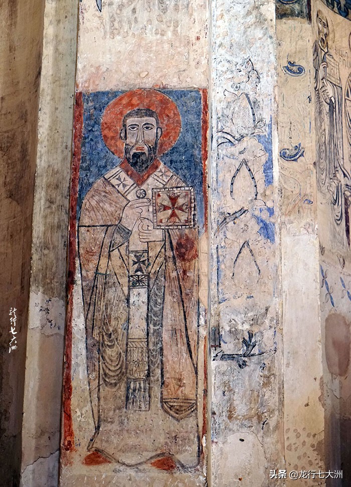 教堂里面的空间并不大,穿过那些狭窄的布满浮刻的过道,在教堂大厅的墙上,还能看到残存的壁画,它们也已经历过1000多年的岁月了。