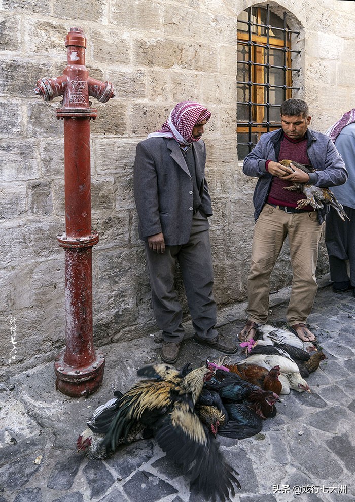 乌尔法的巴扎在Narinci 清真寺东面,由几条杂乱的街道组成,有些有顶,有些露天。商品花色繁多,从羊皮、禽鸟、鸽子到牛仔裤、手工鞋一应俱全。市场主体部分由苏莱曼大帝建于16世纪中期。我最喜欢这里的禽鸟市场,乱哄哄的,很热闹,人们的交易很随意,他们并不是固定商贩,只是偶尔把家里的一两只鸡拿来换点钱。