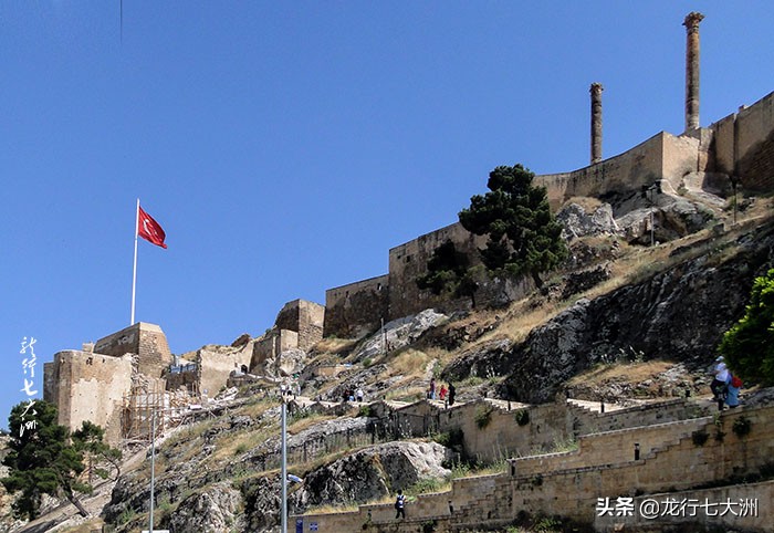 城堡位于达姆拉西克(Damlacik )山上,是城市的地标建筑,据说易卜拉欣就是从这座山被抛下去的。它可能建于希腊时期,或拜占庭时期,要不就是十字军东征时期或奥斯曼土耳其时期,反正说法五花八门,不好确定,这要看导游是如何告诉你的。但无论如何,这曾经是座宏大、华丽的建筑。山顶上有一对柱子,当地传说中称它们为内姆鲁特的宝座,名字来源于圣经中的尼姆罗德(Nimrod)王,也就是传说中乌尔法的建立者。在城堡上可居高临下,一览乌尔法的风光。