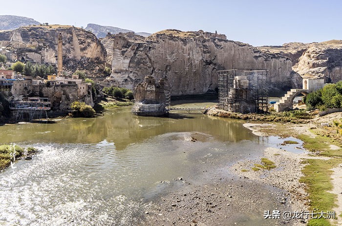 当看到河面上那两个残缺的桥墩和后面高耸的宣礼塔时,我知道哈桑凱伊夫到了。