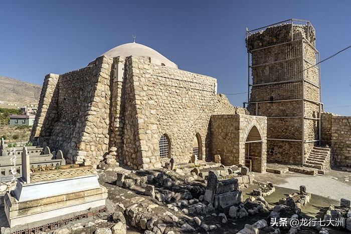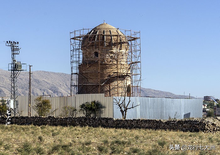 泽内尔·贝死于1473年的一场战争中,他被埋葬在这座圆形的kümbet砖塔中,由建筑师皮尔·哈桑建造。砖塔镶有海军蓝和绿松石色的瓷砖,是一个用砖和瓷砖做成的对角线图案的圆柱体。北面有一个尖拱门,南面有一扇窗户。我去的时候,陵墓在做整体搬迁的准备,四周用已围起来了,看不见全貌。半年后,这座陵墓被整体搬迁到3公里外的高处(后面会专门介绍)。