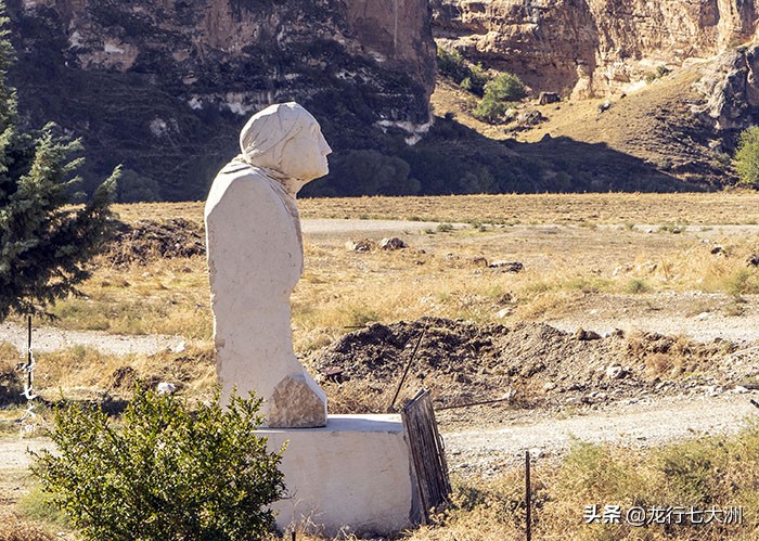 在到达古城之前,河岸附近的山坡上就能看到很多成排的岩洞,经过一个的雕像(我不知其名),公路更靠近了底格里斯河,这是我第一次看到这条孕育人类最早文明的河流,心情未免有几分激动。当看到河面上那两个残缺的桥墩和后面高耸的宣礼塔时,我知道哈桑凱伊夫到了。