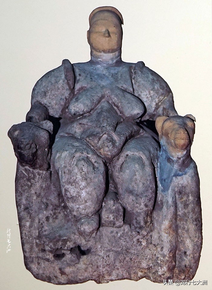 其中最著名的是加泰土丘女性坐像(Seated Woman of Çatalhöyük)——“坐着的女人”,是烤制的粘土裸女形象,坐在猫头扶手之间。通常认为,其描绘了一个健硕肥胖的母亲女神,坐在她的宝座上分娩时的情景,手扶着的托头上有两只猫科动物(雌狮,豹或豹)。它是由未知艺术家塑造的新石器时代雕塑,大约在公元前6000年完成。由考古学家 詹姆斯·梅拉特于1961年在恰塔霍裕克发现,当发现它时,它的右侧头和手托不见了,修复的头部和扶手是现代的复原的,该雕塑原件现存于安卡拉安纳托利亚文明博物馆。