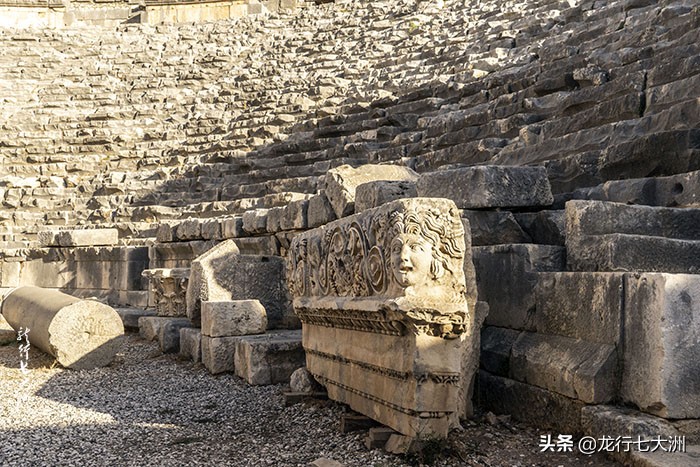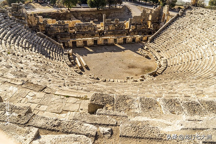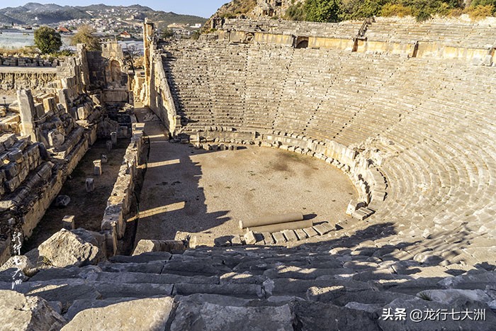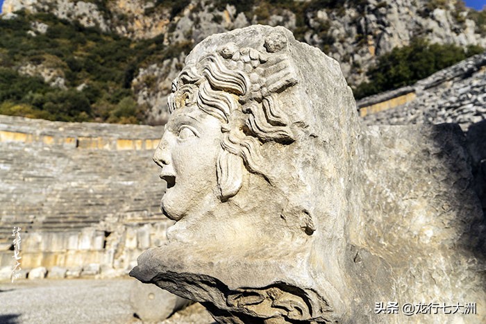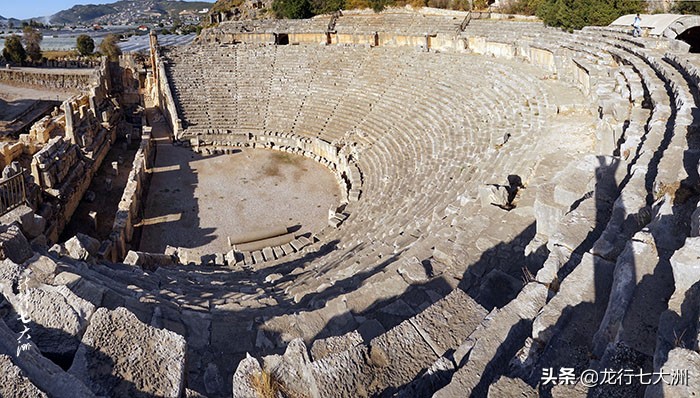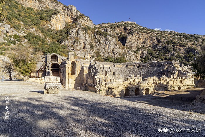 剧场坐落山崖之下,山崖上是古老的利西亚墓葬群。
