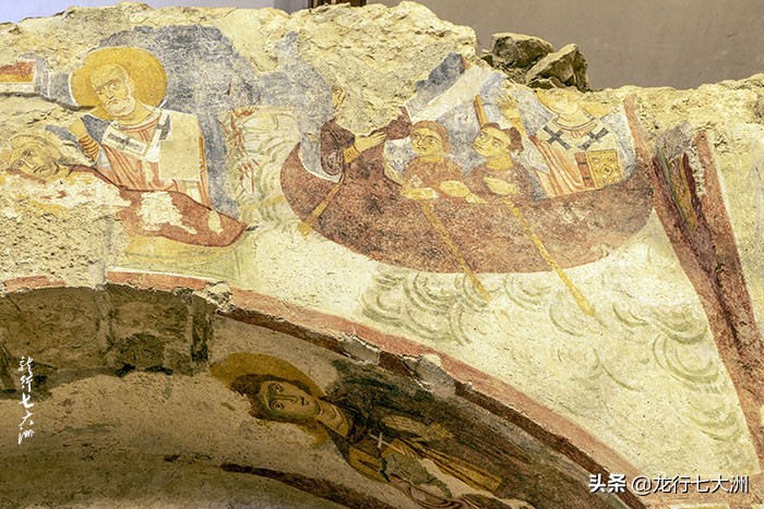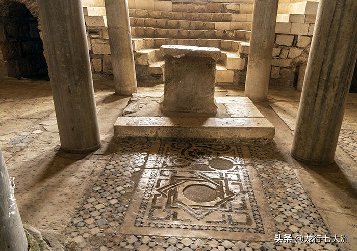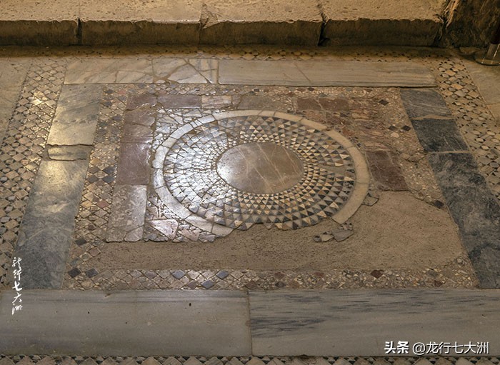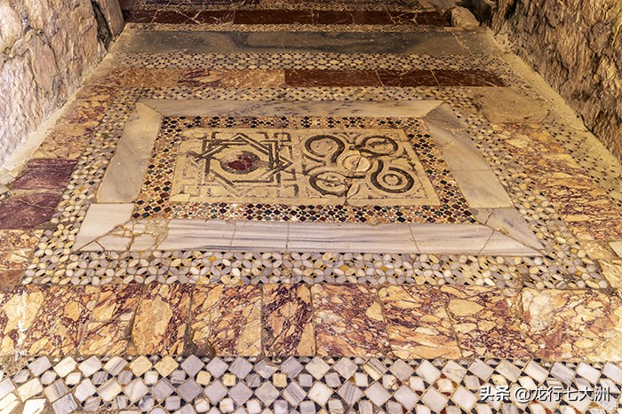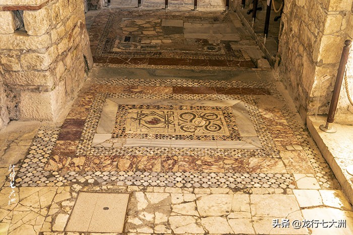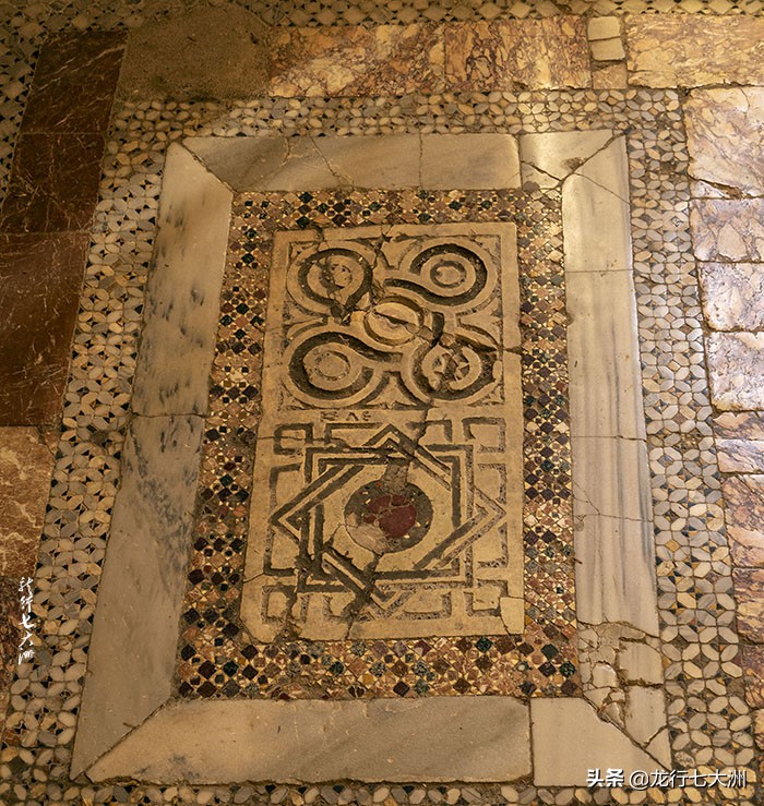教堂的地板是彩色大理石马赛克拼成,是献给圣徒的。墙壁上还有很多残存的笔画,多数是拜占庭时期的。