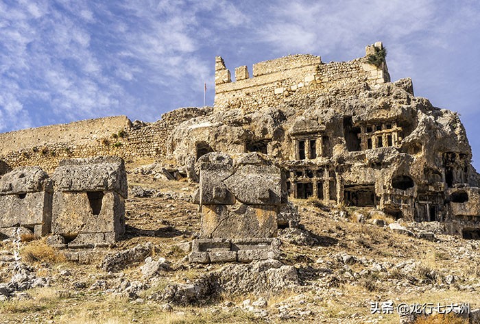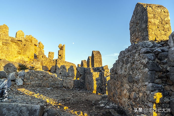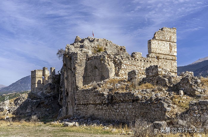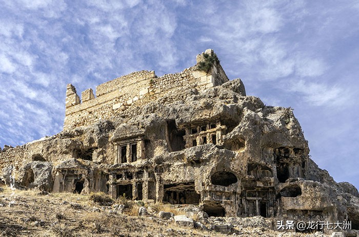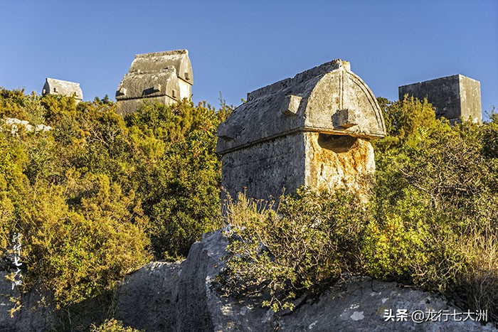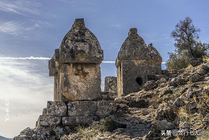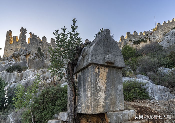 城堡雄踞山上,在通往城堡的山坡路上,散落着无数的利西亚石棺,颇为壮观。