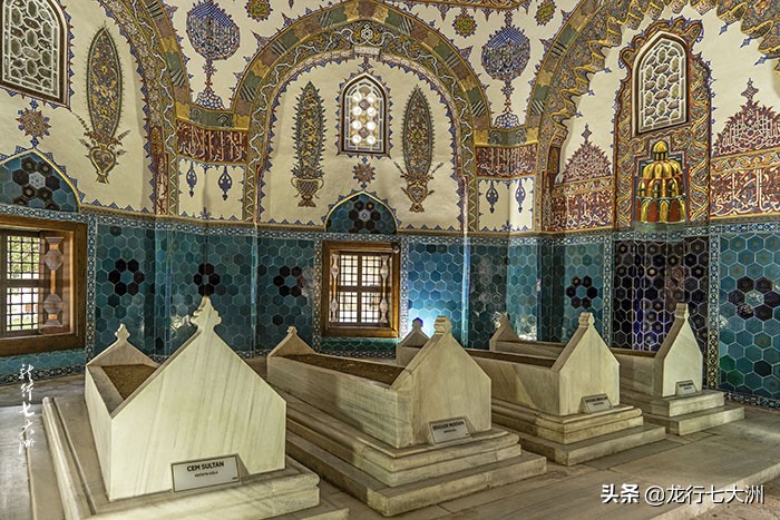 这些陵墓轮流开放,很多陵墓的周边还以漂亮的伊兹尼克瓷砖装饰。红砖建造的陵墓外表基本相近,内装饰差别比较大,有的非常豪华漂亮,有的比较简单朴素。穆拉特二世一生苦修兼为旋转托钵僧,他的安息之地就没有什么装饰,庄严肃穆。