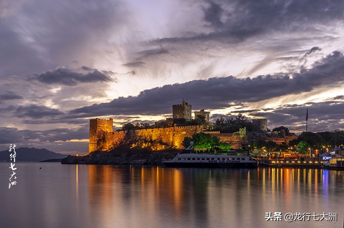 博德鲁姆城堡是博德鲁姆最显著的地标,也是这座港湾城镇最主要的历史见证物。城堡位于爱琴海与地中海的分界线上,是十字军在15世纪建造的,它守卫在碧波荡漾的博德鲁姆海湾入口,俯瞰整个港口和滨海大道。夜色中,城堡被装饰的灯光绘上彩妆,倒影在水中摇曳,非常迷人。