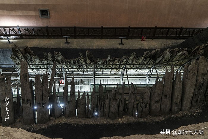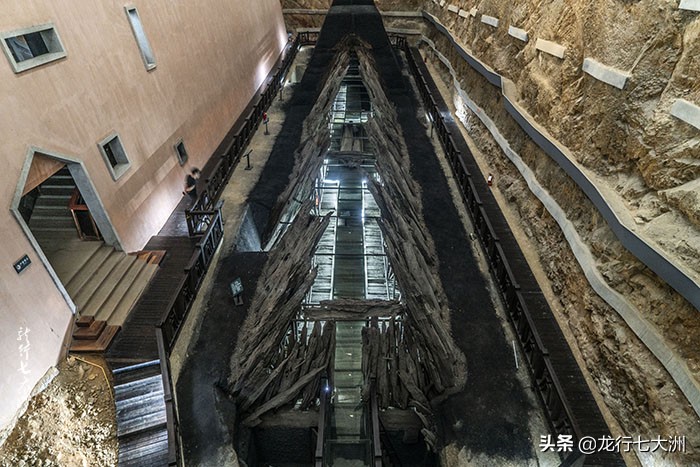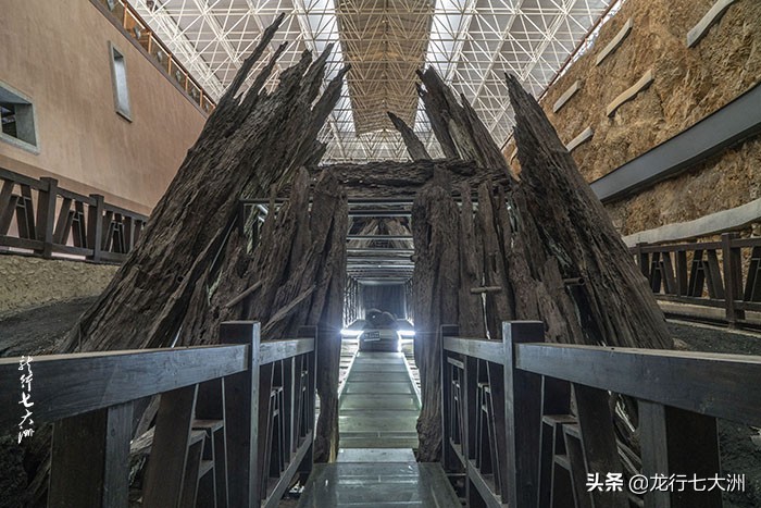 现在对外展出的是印山越国王陵的发掘现场,围绕大墓,四周修建有两层木栈道,可沿着上、下层的栈道环绕步行,在各个角度观赏大墓。关于出土的随葬文物,我询问了印山王陵的管理员,他们说出土的文物现存放于柯桥的博物馆来,据说不对外展出。