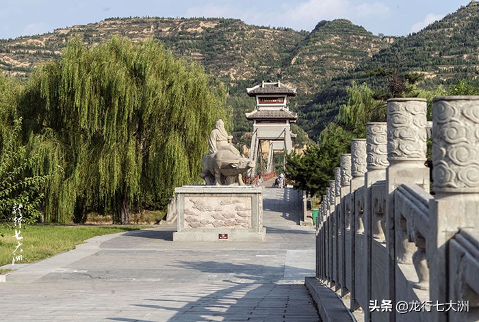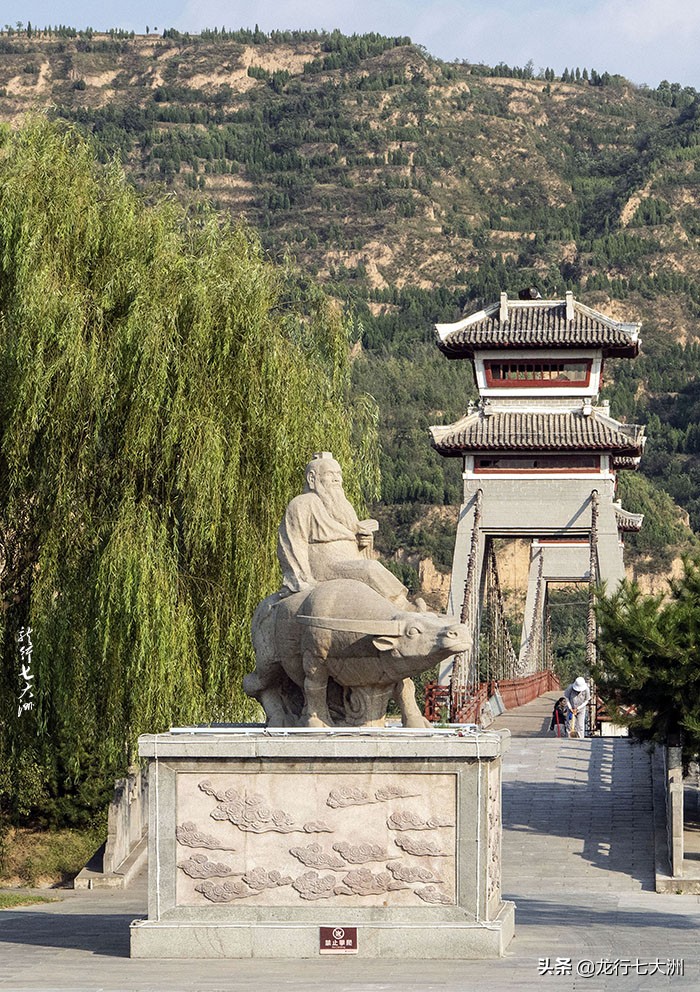 关楼的东侧是一个广场,广场向东过桥,是老子骑牛出关的青石雕像,不妨在这里问问老子:您出关后去了哪里?