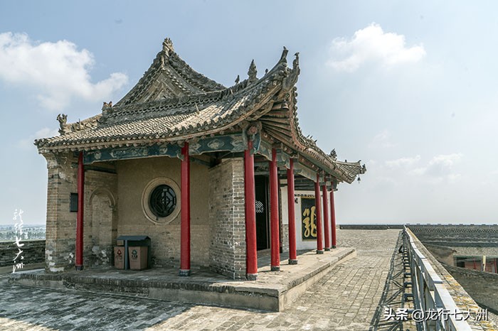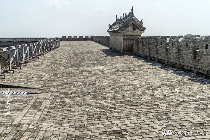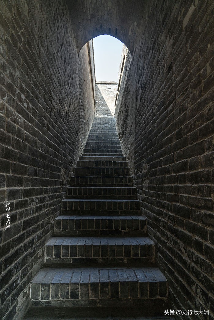 仓院内西南角有台阶可通往仓顶,砖铺顶面,外高内低,四方共筑水馘道12个,并周砌女墙卫护 。