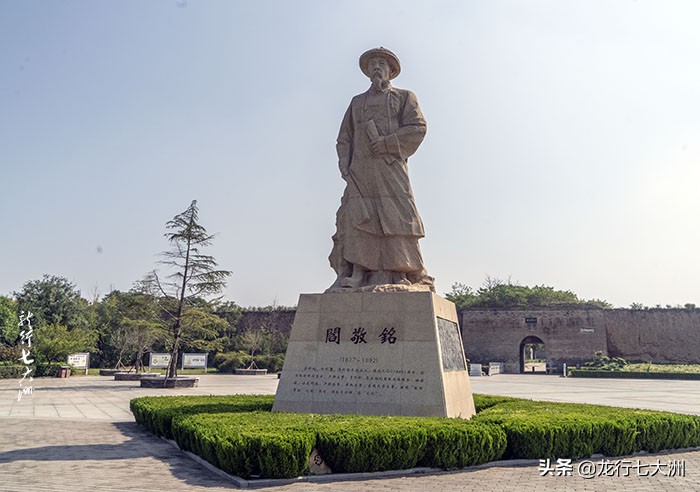 来到丰图义仓,在外城外面的广场上,首先看到的是义仓的建造者“阎敬铭”的站像。