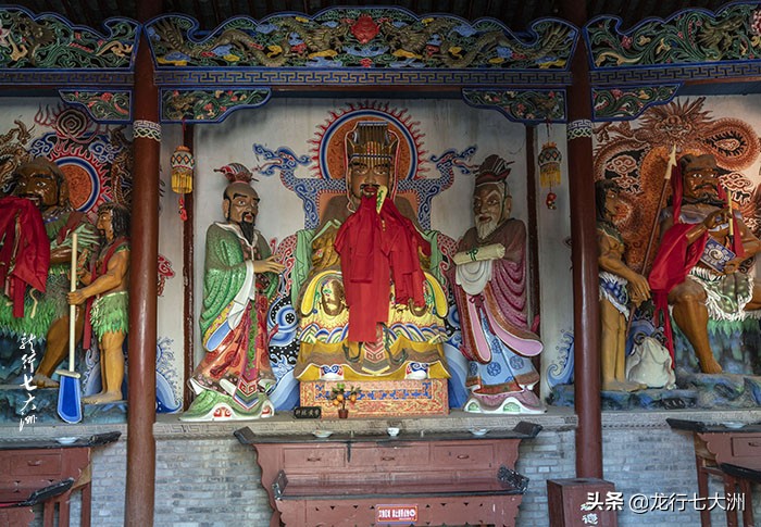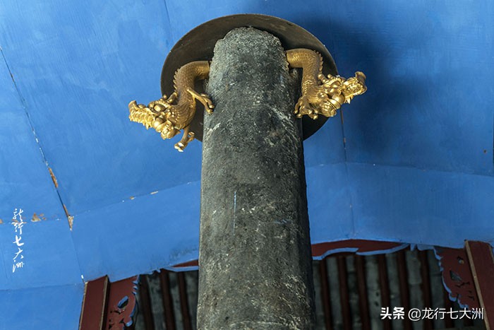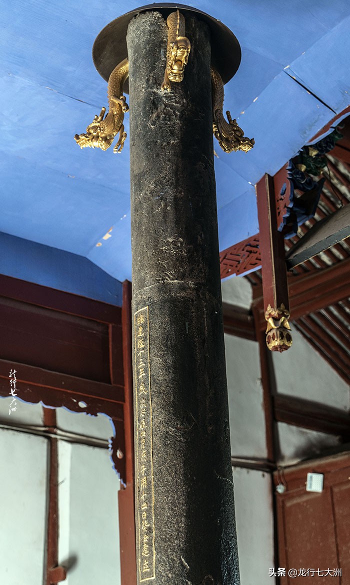 2004年维修铁柱庙时,上面的三个木叉已被三条镀金铁龙所取代