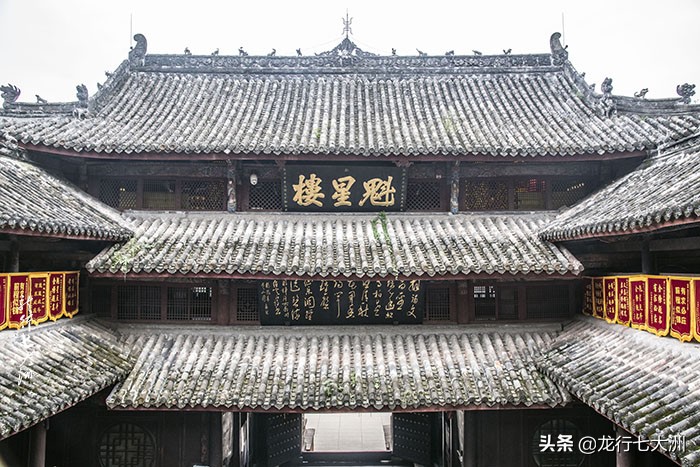魁星楼正中有“帝乡”匾额,匾额之下就是文昌庙的皋门。皋门指古代帝王的廊门,这里是文昌帝故里,自然可以称皋门。魁星楼上供奉的魁星是“文昌第一化身”,在儒士学子心目中,魁星具有至高无上的地位。