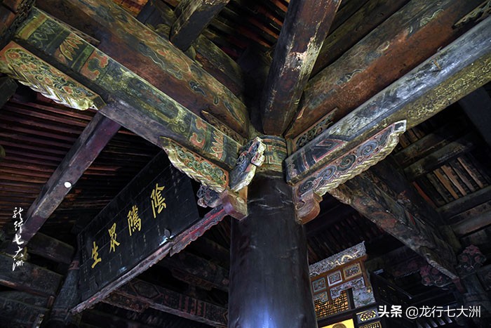 桂香殿是明代建造的,采用了减柱造法。当你围绕殿内四根粗大的柱子细看,它们都向不同方向大幅度倾斜,随着人的方位变化,柱子倾斜的方向也随之变化,很难确定它们倾斜的具体方向。