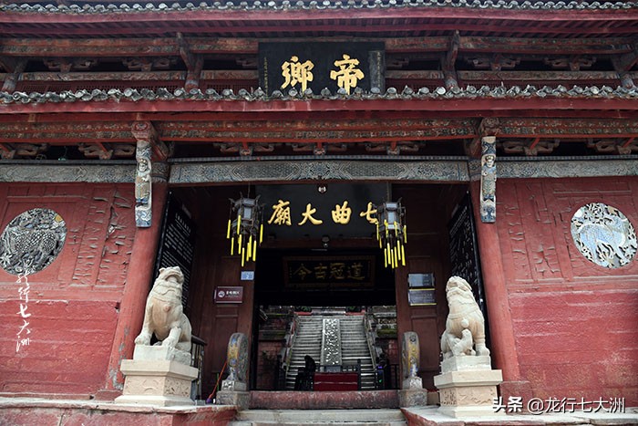 七曲山大庙在四川省绵阳市梓潼县,距离绵阳市49公里,是道教之中的文神文昌帝君的祖庙。大庙始建于晋,是当地百姓为纪念晋代张亚子而立的“亚子祠”。元朝初年,张亚子被封为“文昌帝君”后,在此建造“文昌宫”,后经元、明、清三代多次扩建,形成了一组结构宏伟、体系完整的古迹建筑群,整个大庙一万二千多平方米,为文昌宫和关帝庙的总称,由23座不同时期的建筑群所组成。七曲山大庙较完整地展现了从元代到民国各时期的建筑风格,是研究我国古建筑史的珍贵实物资料。