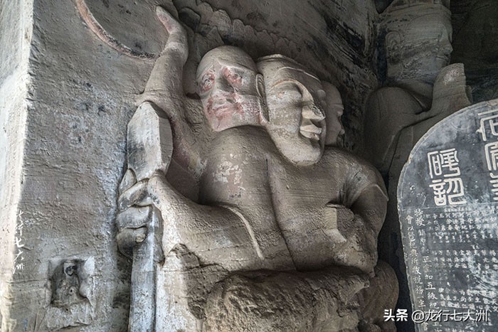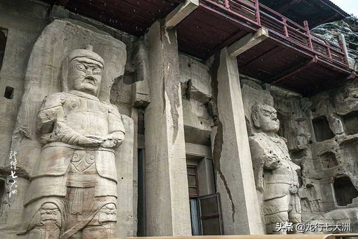 窟门外雕二天王,高5.7米身穿铠甲
