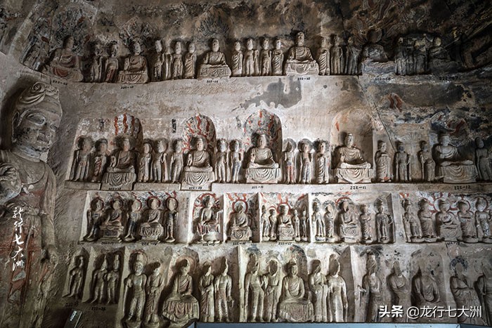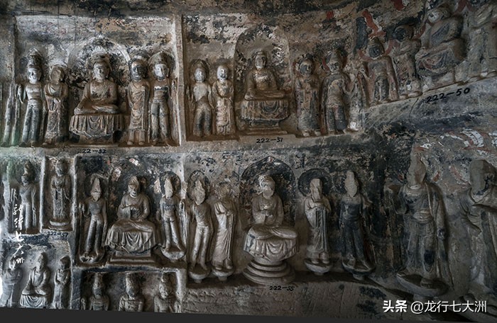 北石窟寺窟龛分布的岩石断面南北,长120米、高20米,大小相间,可分三层雕凿,其窟龛分布密集,形如蜂房,造像均为高浮雕和圆雕,形象逼真,风格各异。
