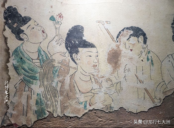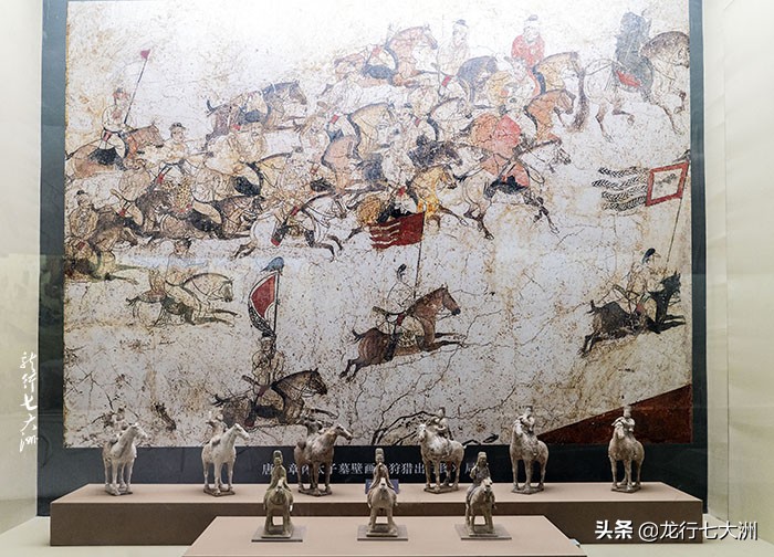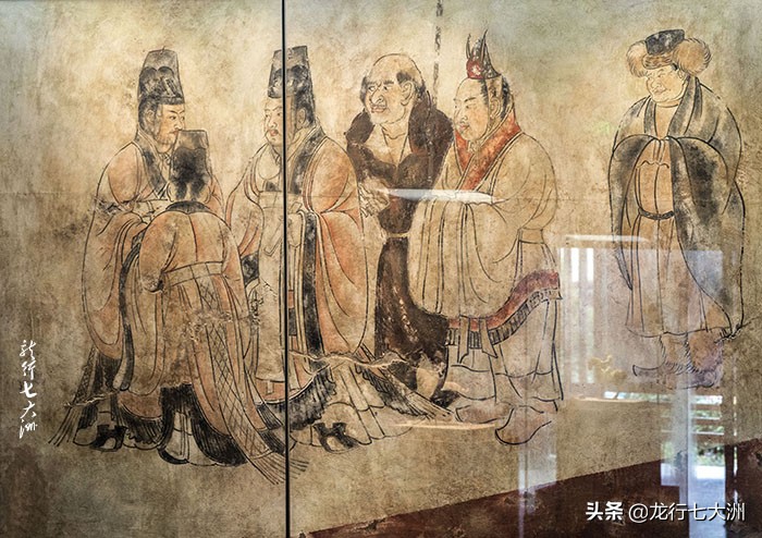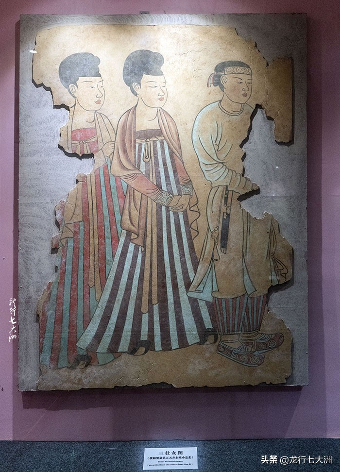 昭陵唐墓壁画陈列室展示昭陵陪葬墓出土壁画88幅,有婀娜多姿的侍女,翩翩起舞的乐伎,神态各异的给使还有贵夫人乘牛车出行的场面等等。