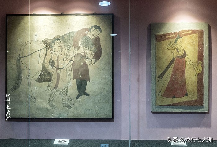 牵马图-韦贵妃(左);给使图-段简墓(右)
