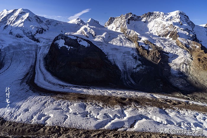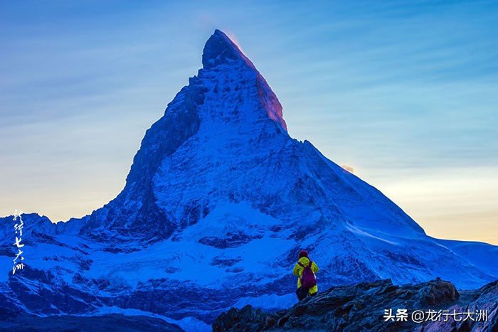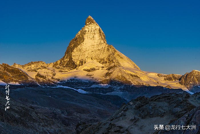 先简要介绍一下马特洪峰:马特宏峰是阿尔卑斯山第二高峰,也是西欧第二高峰,海拔4478米,其屹立在瑞士和意大利的边境线上,与欧洲第一高峰勃郎峰(海拔4810.90米)隔空相望。虽然只是第二高峰,但马特洪峰却以其独特而出众的三角锥形的造型,独特、刚毅、坚韧、挺拔,让阿尔卑斯山的巍巍群峰黯然失色,臣服于其脚下,故马特洪峰在欧洲又有“群山之王”的美称,也是阿尔卑斯山的象征。