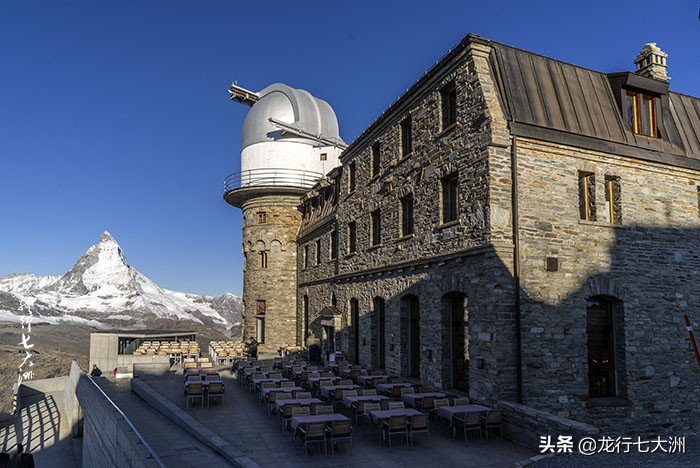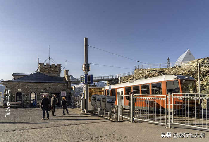过夜点找到了,我们继续乘车到终点站戈尔内格拉特,那里有观景台,可以全角度地欣赏周围的群峰、冰川,同时欣赏一下戈尔内格拉特3100库尔酒店的雄伟外观。