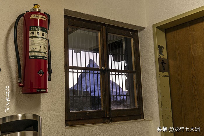 车到达罗滕博登站时,我们先下车在车站附近观察一下,踩踩点。出站右侧10多米就有一个洗手间,我走进洗手间,一切“无处过夜”的顾虑都不见了,这里就是理想的过夜地方。进入洗手间是一个厅,大约有10多个平方,右侧是男女两个洗手间,有封闭很好的弹簧门,从男洗手间门口的窗口就能看到马特洪峰;左侧靠墙有一条3米多长的木长椅,在长椅的一头有长长的暖气片,让室内非常暖和,我们几乎要欢呼了,就在这里过夜。