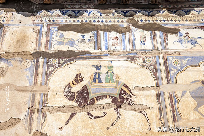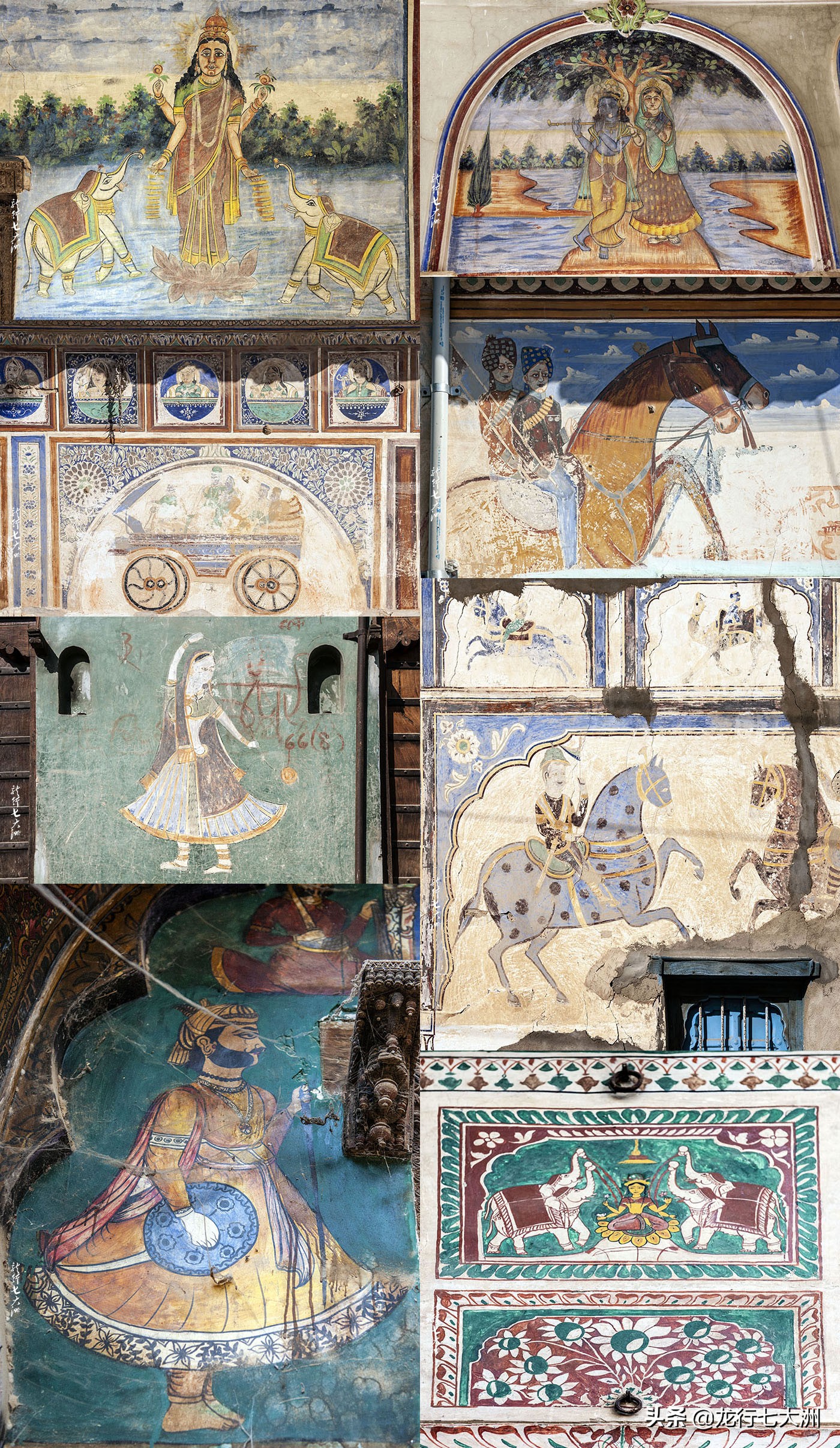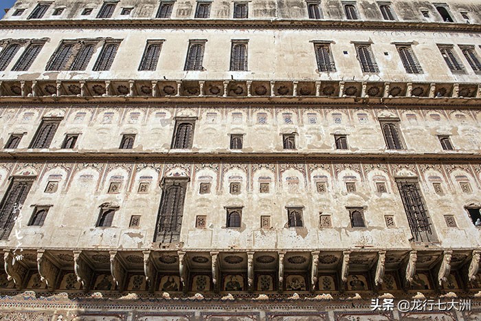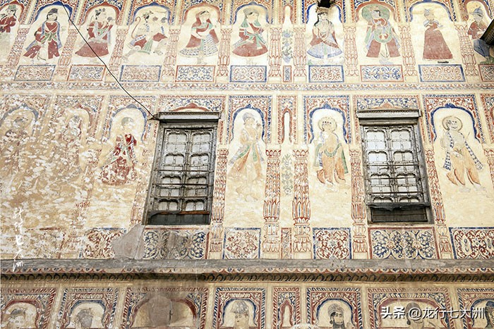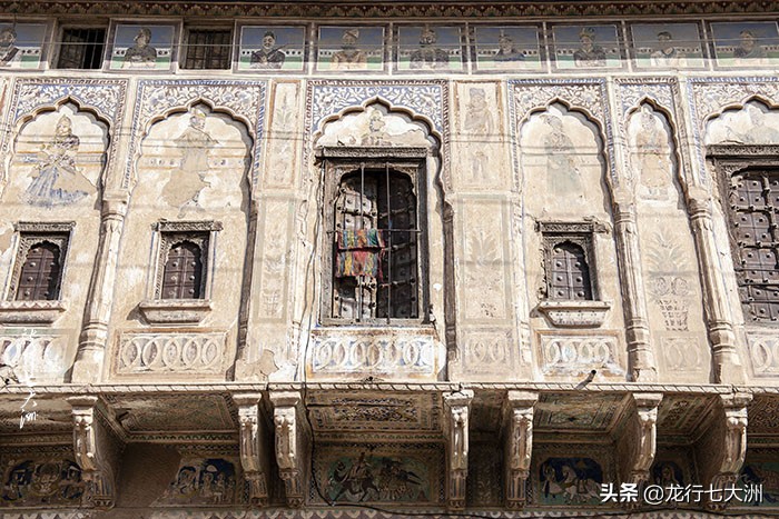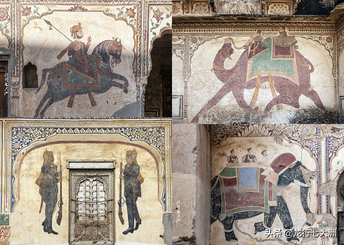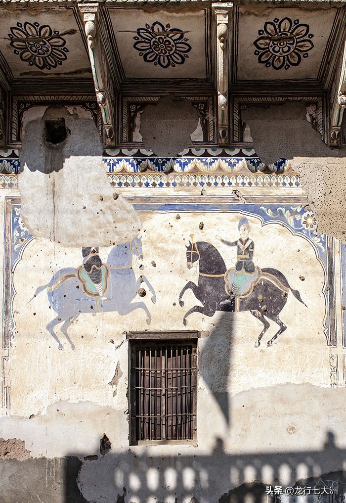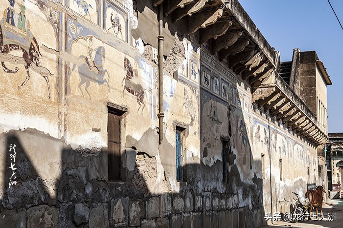 这里的哈维利都建在18至19世纪间,那是在外经商的商贾发财之后,把钱送回家里修建豪华的房屋,除了提高居住的舒适性以外,也有在邻里间攀比炫耀的成分。19世纪后期,什卡瓦提的人们便从他们沙漠中的家搬到了恒河沿岸日益崛起的商贸港口,现在,这里的哈维利已人去楼空,多数都已荒废,破旧不堪,过去的辉煌已不复存在,只有少数的哈维利还有人家居住,看他们的生活状况多数都很贫穷,估计也没能力去维护这些古老的建筑,只能任其荒废。