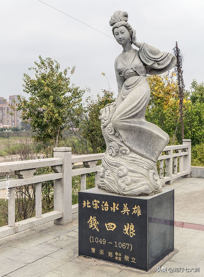 在南岸的广场上,有一尊钱四娘的白色雕像,是后人对这位舍生建陂的女性的崇高敬意和怀念。