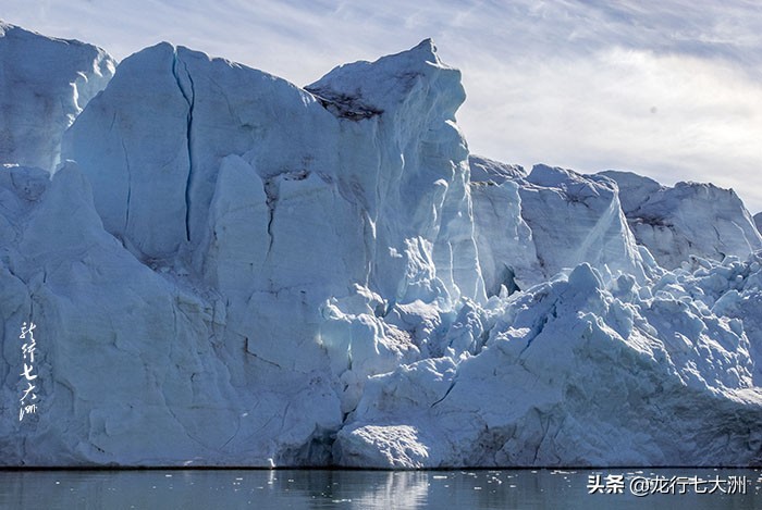 上午的天气晴朗,我们的橡皮艇靠近冰川缓缓行驶,让我们就近欣赏冰川的壮美景色。很多北极燕鸥在这里盘旋、降落、鸣叫,它们似乎是这里的管家或领主,让寂静的冰川焕发着生命的活力。