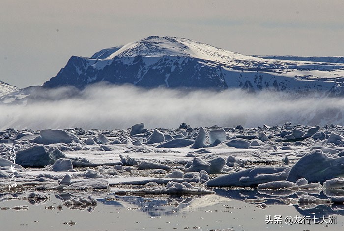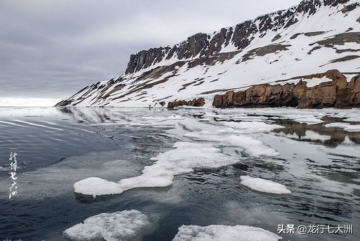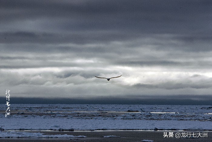 船一直在向北航行,我们在船上欣赏北极风光,阴沉的天气,让周边的景色呈现出苍凉的景色。