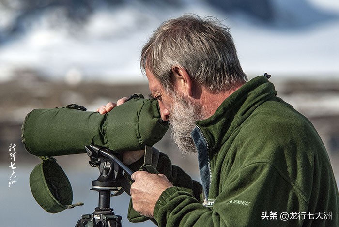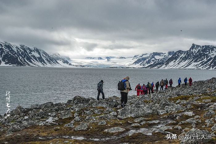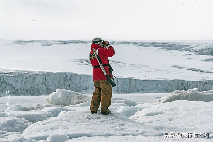 在我们的每次登陆前,都会有一个穿红色衣服背着枪的警卫先去侦查是否安全,然后,大家要在他的带领下登陆行走,这主要是为了防止北极熊的突然出现伤害到游客。