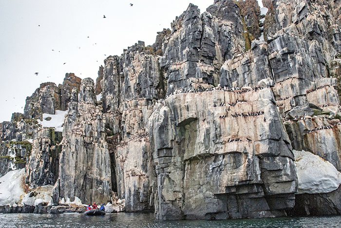 乘橡皮舟去看悬崖上的海鸟