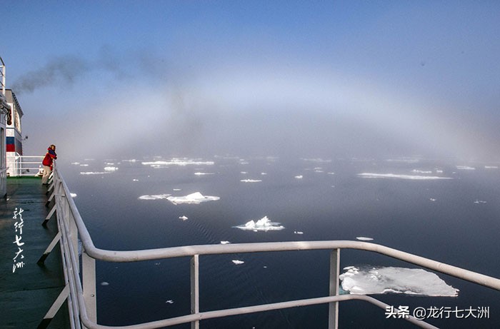今天来到了斯瓦尔巴群岛北端的菲普索亚岛(Phipps Island),早晨的“晨雾彩虹”给我留下了深刻的印象。海湾里布满了浮冰,水雾笼罩水面,浮冰若隐若现,是一幅很美的画面。
