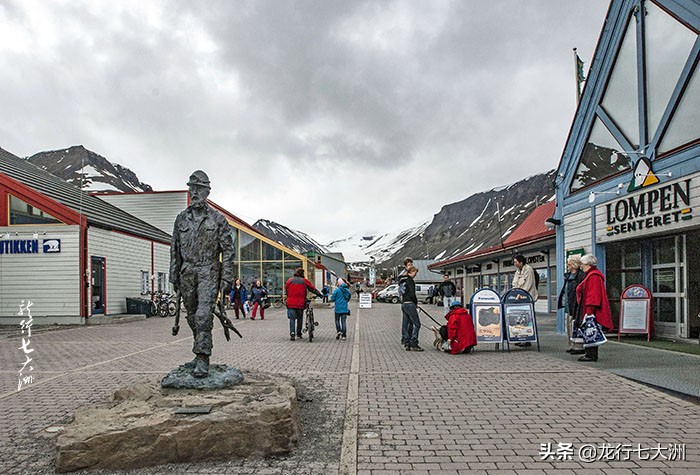 我们到旅馆里睡下已经是凌晨了。之前在挪威近10天的峡湾之旅折腾得够呛,特别是前天登上了卢瑟峡湾,非常累,今天一直睡到午后才起床。餐后去街上转转。天气阴沉,街上很冷清。这是一个只有千余人的小城,产煤,街心有一个矿工的雕像十分醒目。