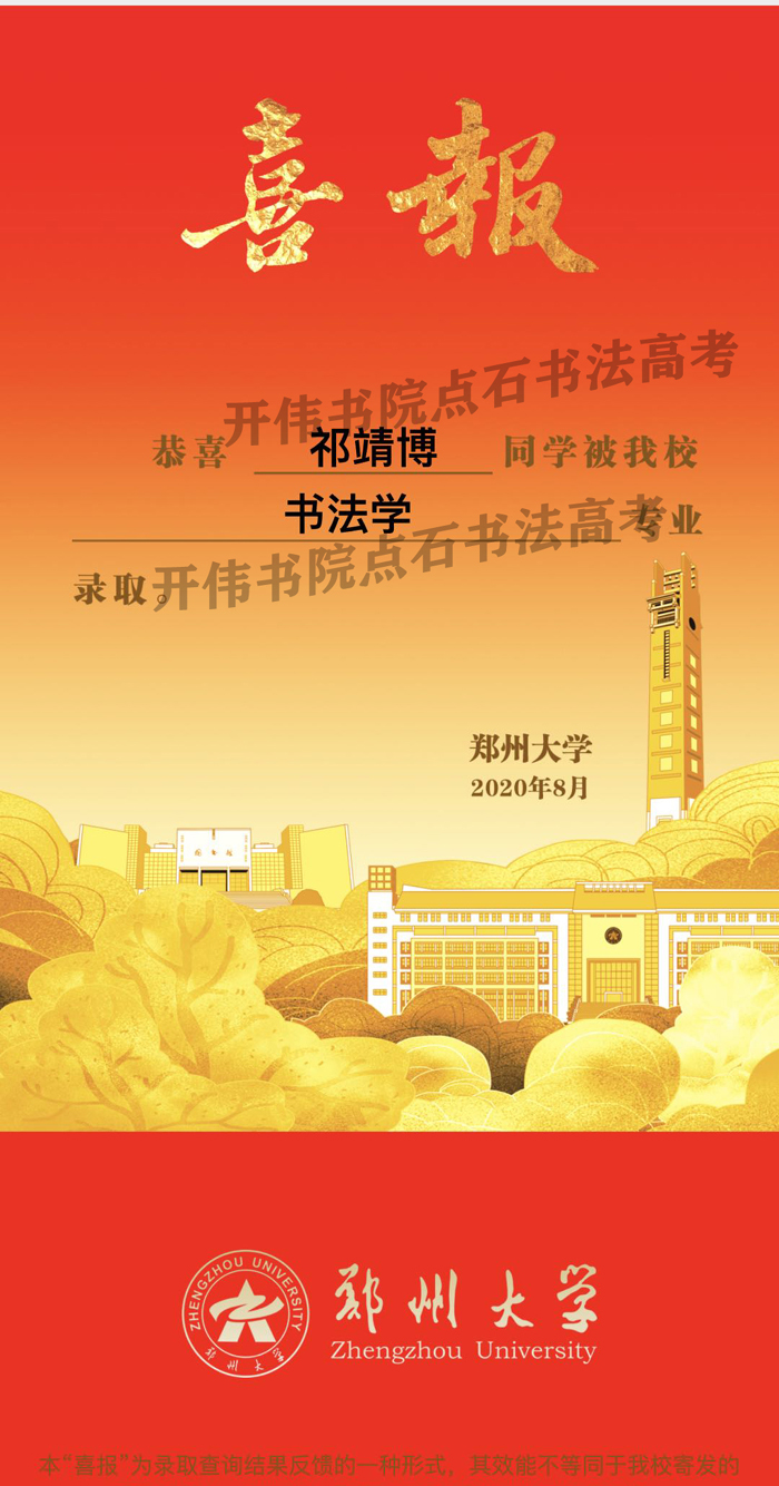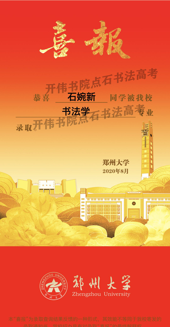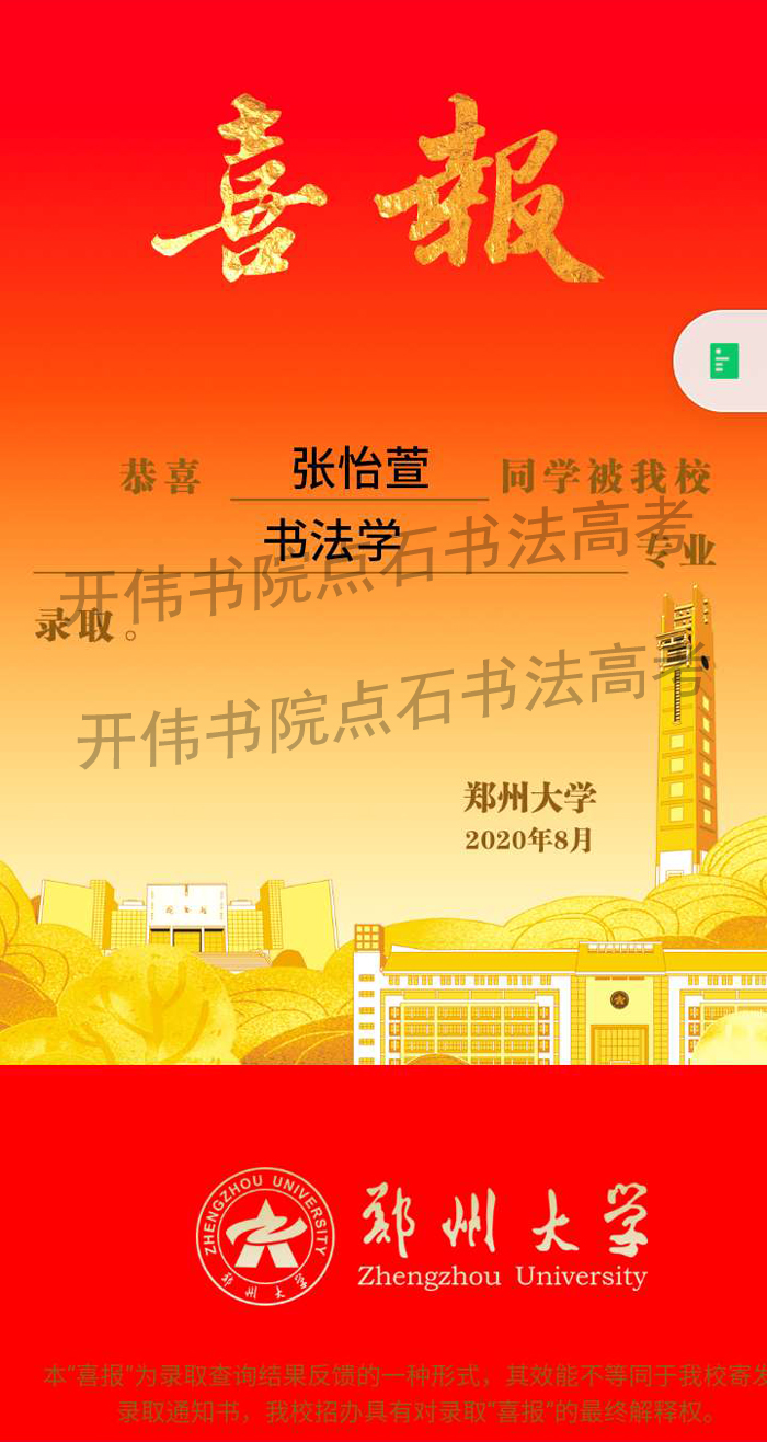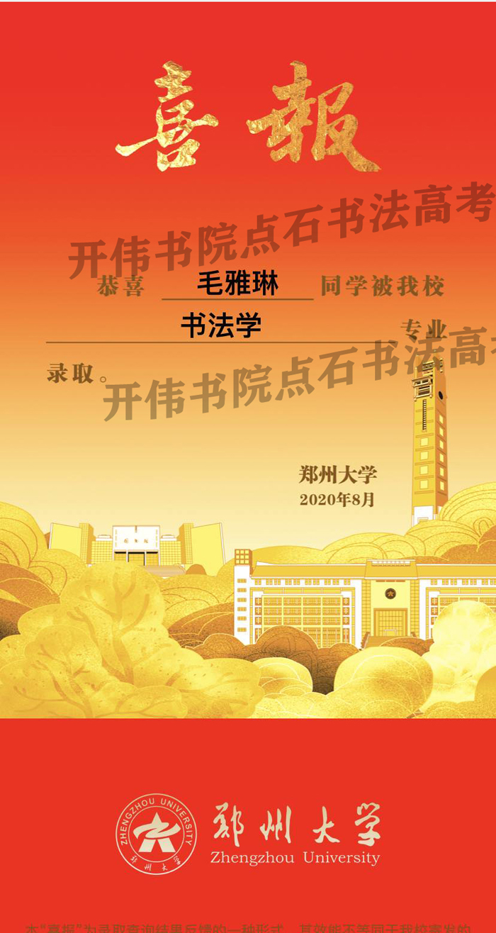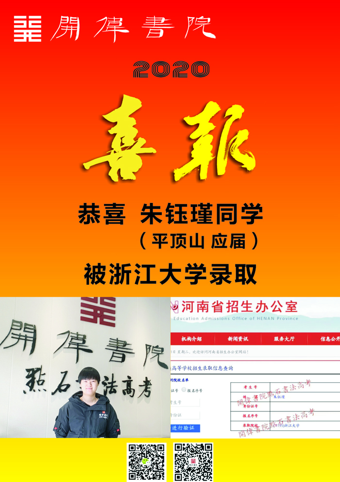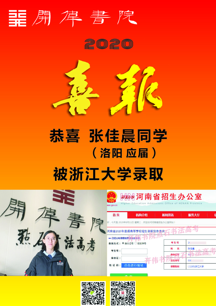 浙江大学录取2人(985、211,浙江大学书法专业2020年在河南共招收2人,被开伟书院囊括)